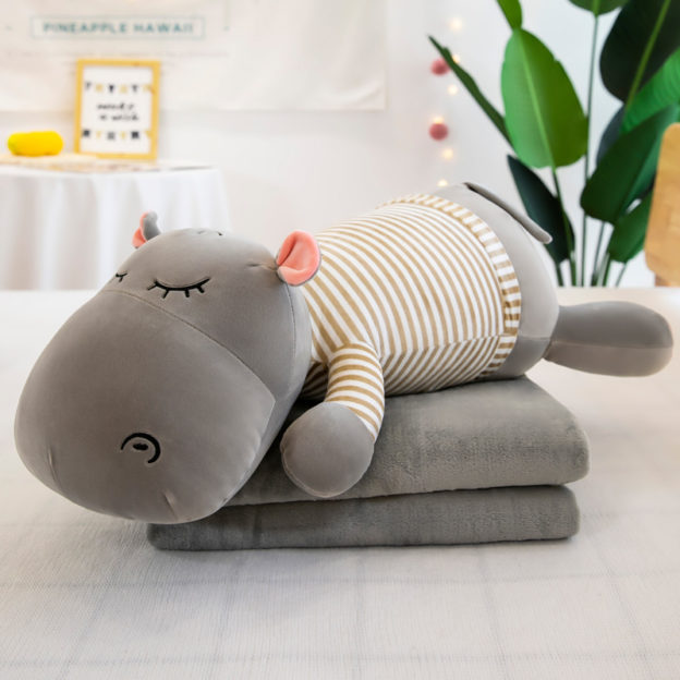 Плед-Подушка Игрушка Hippo серый 60 см